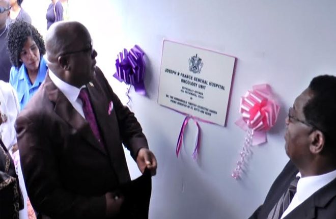 Prime Minister Dr. Hon. Timothy Harris cut the ribbon on the newly handed over Oncology Unit on Tuesday in the presence of government officials and cancer care stakeholders.