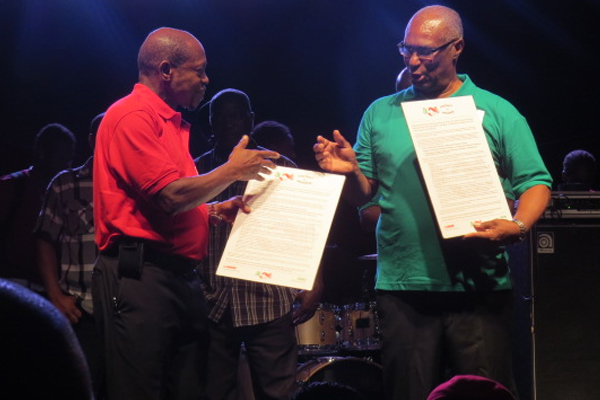 “We are earnestly delivering this document to the public. We haven’t signed it behind closed doors. We are not announcing it in government buildings. We are not having our photos taken in suits and ties. We are here celebrating with you, bringing it to you directly right here in Pinney’s Beach and in Basseterre,” Mr. Parry said.