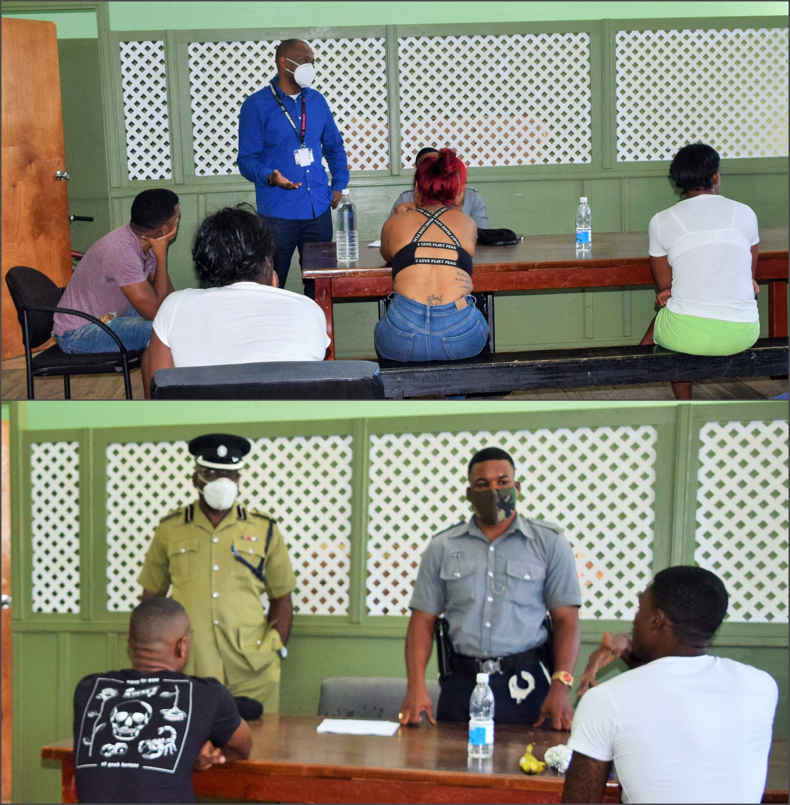 Basseterre, St. Kitts, April 26, 2020 (RSCNPF): The Police hosted a sensitisation session on April 24, with persons who were apprehended for breaching the Emergency Powers (COVID-19) Regulations.