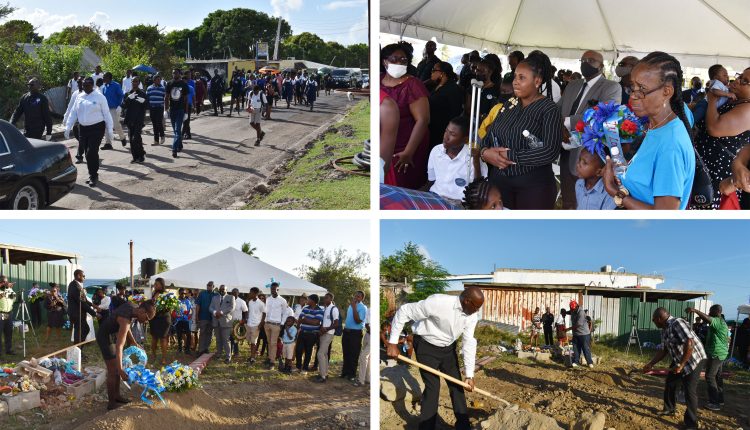 After the thanksgiving service at the church, the funeral procession moved along the Island Main Road to the Catholic Cemetery in Cleverly Hill. Prime Minister Harris was also in the procession. Present at the funeral service at the graveyard included Minister of Tourism the Hon Lindsay Grant, and Permanent Secretary in the Ministry of Tourism, Mrs Carlene Henry-Morton.