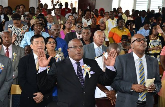PM Harris commends the church for its demonstrated leadership and prayers in “our season of need”