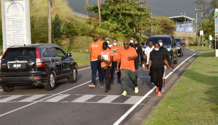 Prime Minister’s Monthly Health Walk, which is held under the umbrella of SKN Moves, is organised by the Peoples Labour Party (PLP). Prime Minister Harris, who is the party’s National Political Leader, thanked members of the PLP Executive who helped in organising the walk, and also took part.