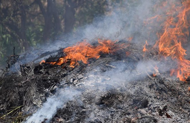 On the fire being fed by discarded pallets and a few automobile tires were the plants of varying sizes and marijuana packaged for sale.