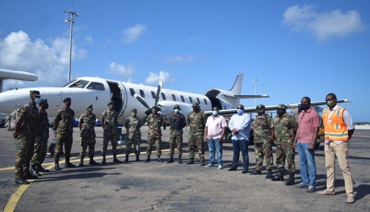 Basseterre, St. Kitts, May 31, 2021 (RSCNPF): A 10-member contingent comprising Police Officers from The Royal St. Christopher and Nevis Police Force (RSCNPF) and Soldiers from the St. Kitts and Nevis Defence Force (SKNDF) left the Federation on May 29, 2021, for St. Vincent and the Grenadines.