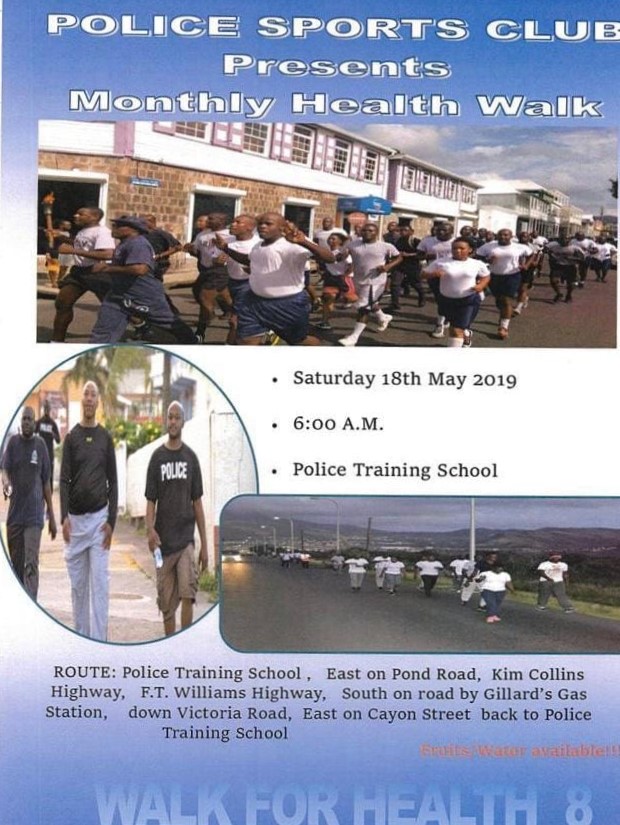 Basseterre, St. Kitts, May 09, 2019 (RSCNPF): The Royal St. Christopher and Nevis Police Force Sports Club will be having a health walk on May 18.
