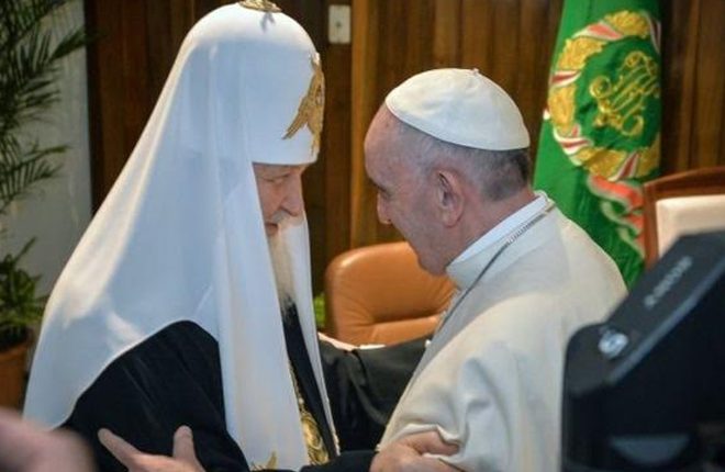 Pope Francis holds historic talks with Russian Orthodox Patriarch