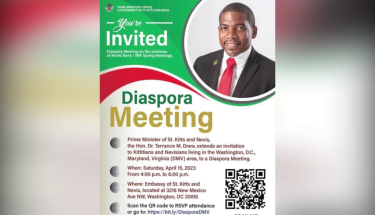 The Diaspora meeting will be held at the Embassy of St. Kitts and Nevis in Washington DC and runs from 4 to 6pm.