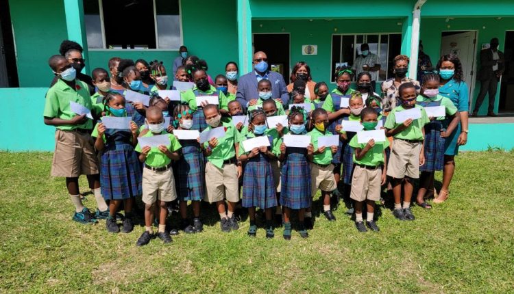 BASSETERRE, St. Kitts, November 11, 2021 (Press Unit in the Office of the Prime Minister) – Prime Minister Dr. the Honourable Timothy Harris, the Parliamentary Representative for St. Christopher 7 (Belle Vue to Ottley’s), visited two primary schools within his constituency where he presented forty (40) students with $500 disbursements through his highly successful Help-a-Child Programme, now in its 18th year.