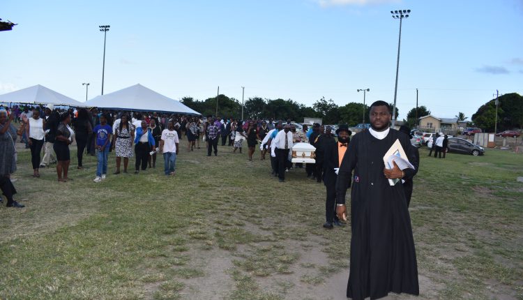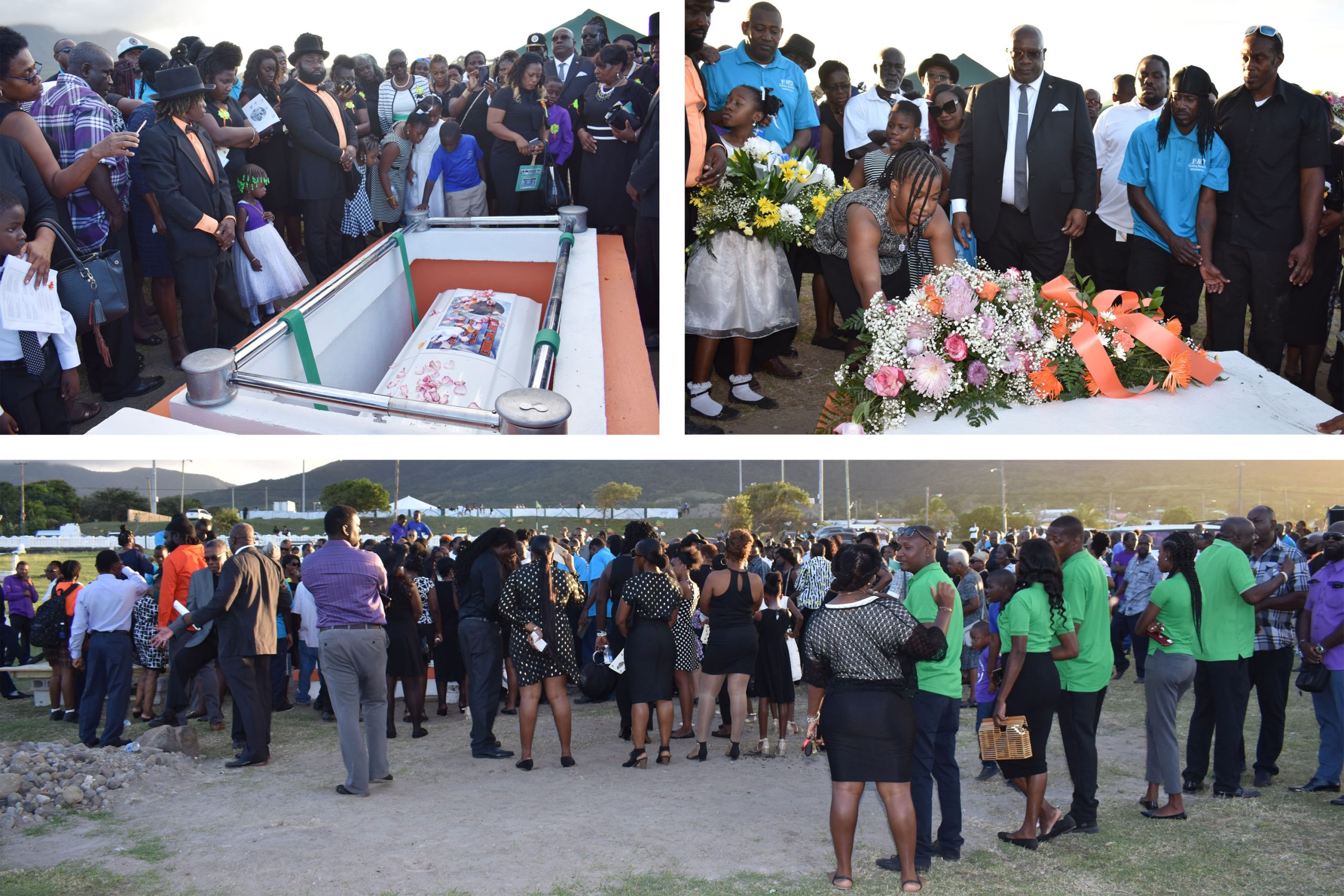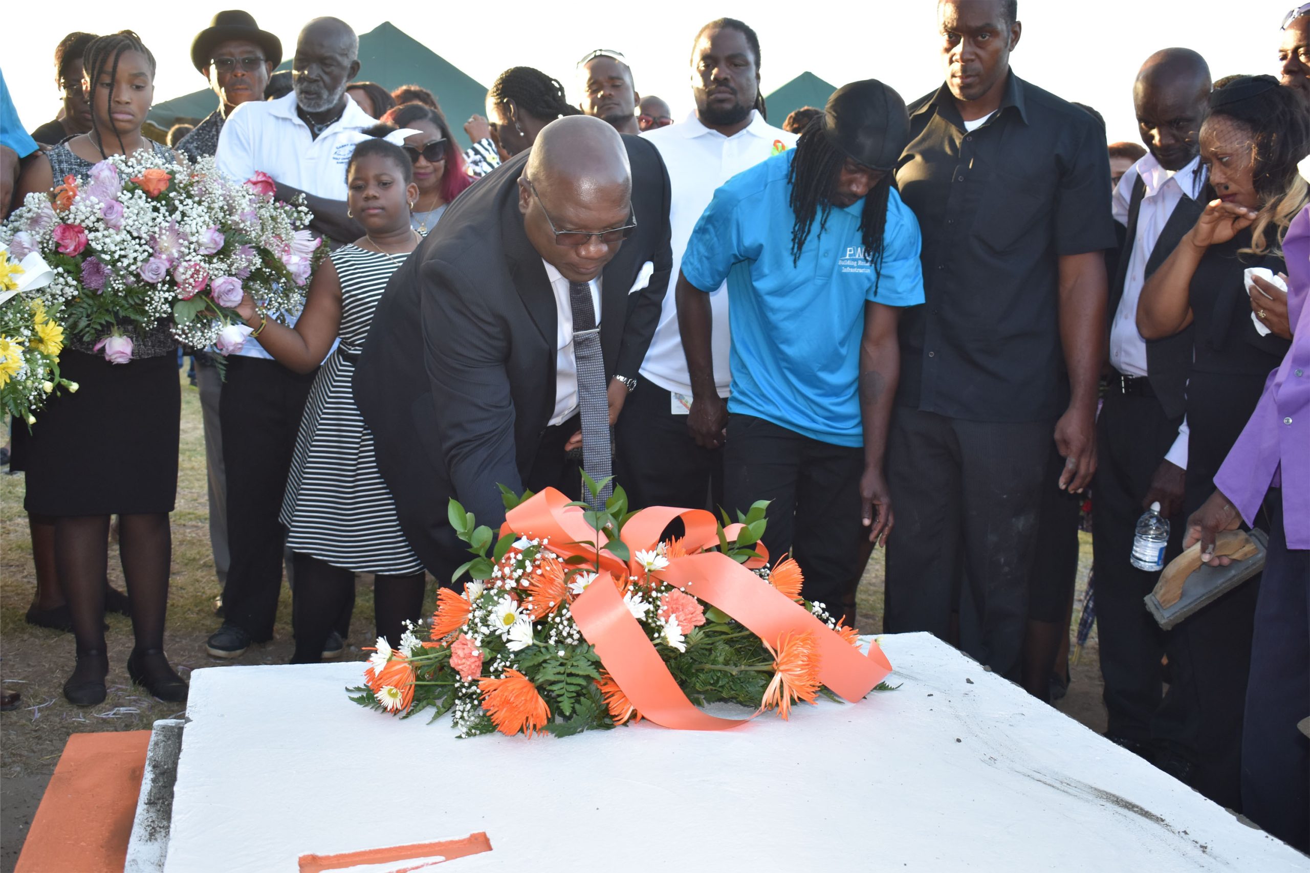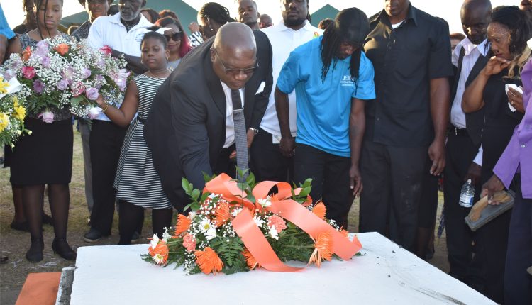 After the thanksgiving service, the funeral procession was led by two police outriders to the local cemetery for the interment. Prime Minister Harris led in laying a wreath on the grave, followed by the daughter of the deceased Miss Macayle Woodley, other family members and friends.