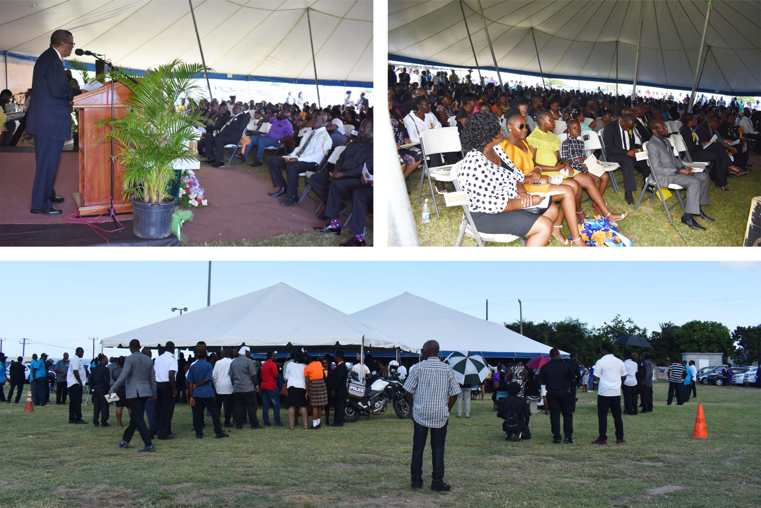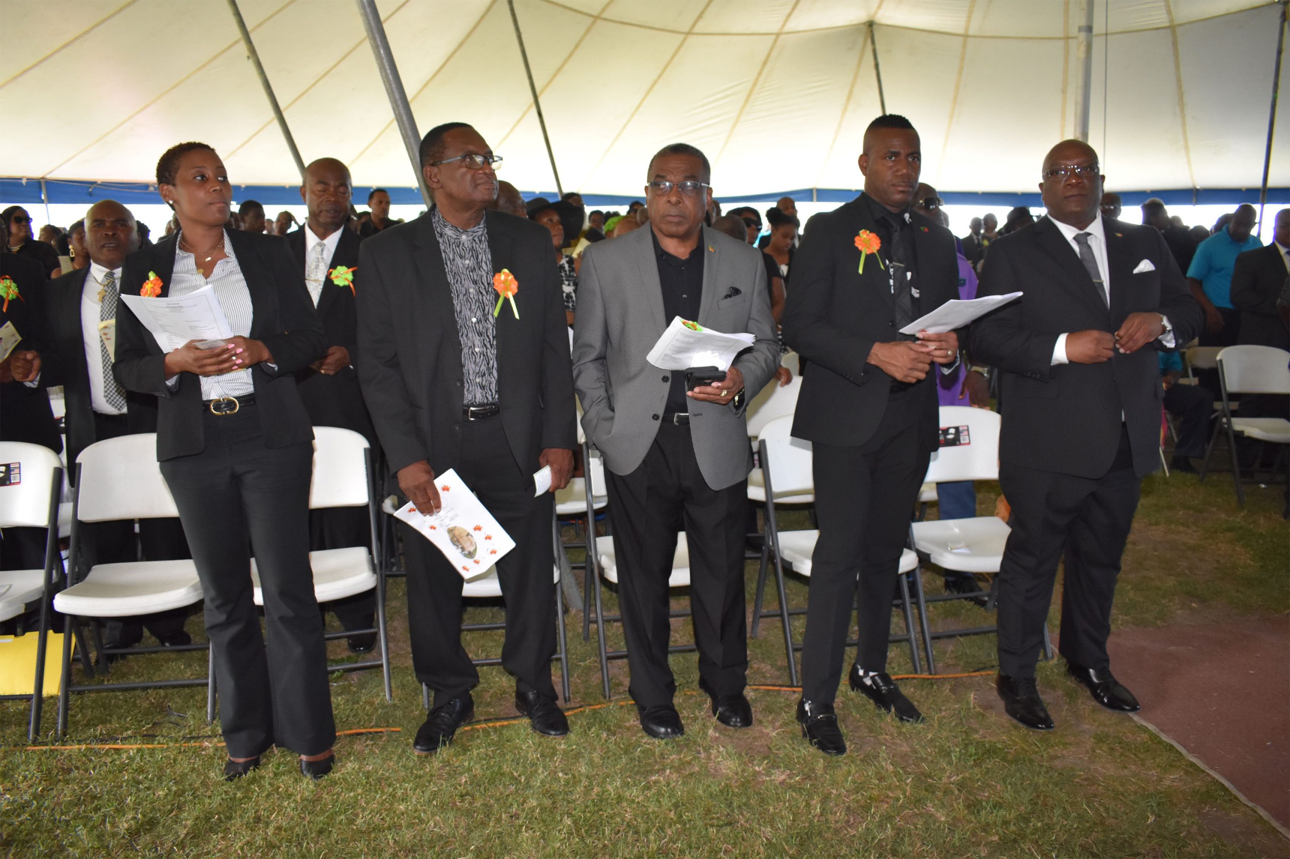 “Always Mac showed a high level of energy and engagement as a community activist everywhere, and a champion of the cause of working people,” said Prime Minister Harris at the thanksgiving service for the life of Mr Glenroy ‘Mac’ Woodley, which was held under two large tents on the sports ground.