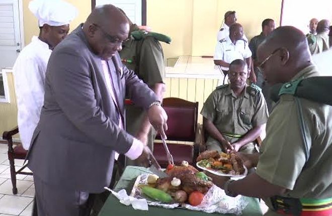 Dr. Harris was given the honour of cutting the Christmas turkey and he used Thursday’s event to hear some of the concerns and recommendations of members of the St. Kitts and Nevis Defense Force.