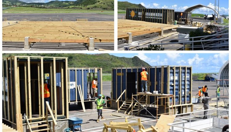 [In phase one there is the] “Construction of a welcome centre on the ramp of arrivals to house passengers ahead of the medical screening. This involves the erection of a 50 by 100-foot tent on reinforced wood, flooring and bathroom facilities. The welcome centre would be air-conditioned, equipped with seating to accommodate in excess of 140 passengers, a concession stand and TVs displaying the relevant and pertinent information,” said Minister Grant. “This facility is built in such a way that it can be easily dismantled and secured in the event of a storm or hurricane.”