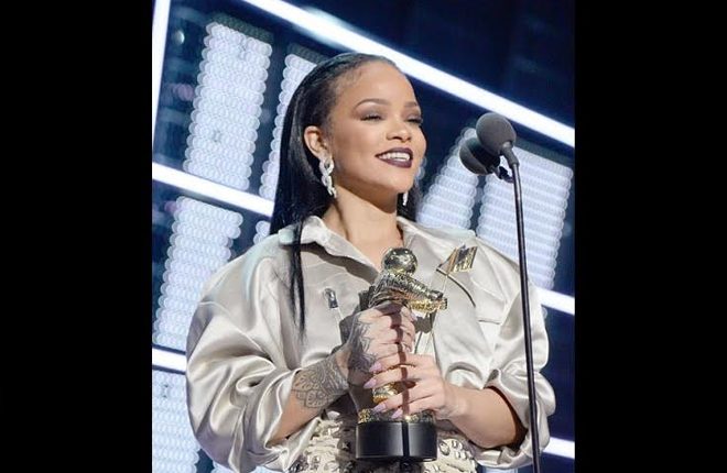The Michael Jackson Video Vanguard Award which honoured Rihanna’s decade-long impact on music, pop culture, fashion, film and philanthropy. And almost as soon as she got it, she showed she was proud of her Barbadian heritage.