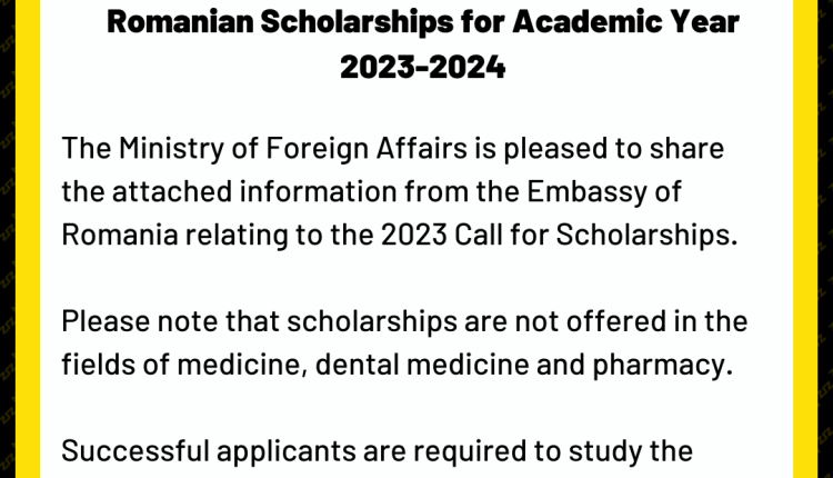 The Ministry of Foreign Affairs is pleased to share the attached information from the Embassy of Romania relating to the 2023 Call for Scholarships.