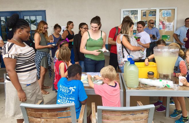 Children from the Ross University Preparatory School also devoted time to their own relief efforts, holding a food drive their first day back at school. After Hurricane Maria, the students participated in a week long food drive collecting food and toiletries in conjunction with the St. Kitts – Dominica Association. Two vehicles worth of items were delivered to assist those in need. In addition, the grade 1 and 2 class set up a lemonade stand to raise funds to help with the relief efforts in Puerto Rico. $1,197EC was raised as RUSVM students and colleagues purchased and donated funds toward the effort.