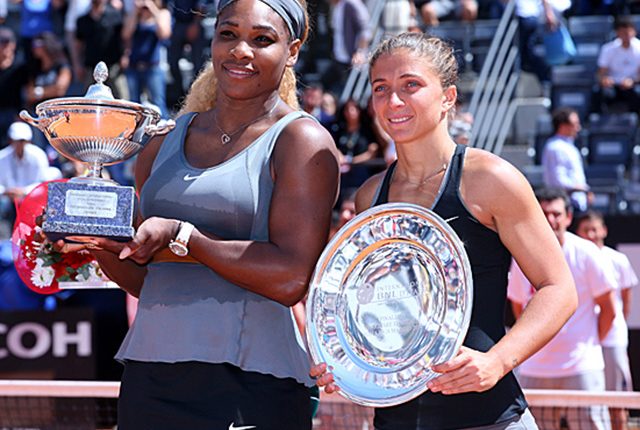 Williams unleashed her ground strokes, hitting 31 winners to 18 unforced errors (16 of which came in the first set) to cruise to her tour-leading third title of the season. Perhaps in reaction to the crowd and Errani’s injury concerns, her celebration was subdued, with just a quiet fist pump, and offered words of concern and comfort for Errani, who was in tears during the post-match festivities. Much to the delight of the crowd, Serena showed off her linguistic skills, and conducted her victory speech in Italian.