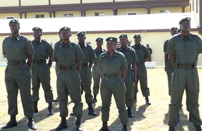 (ZIZ News) — The St. Kitts Nevis Defence Force issued berets with the SKNDF cap badges to recruits, during a ceremony at the Parade Square, Camp Springfield on Thursday 24th March.