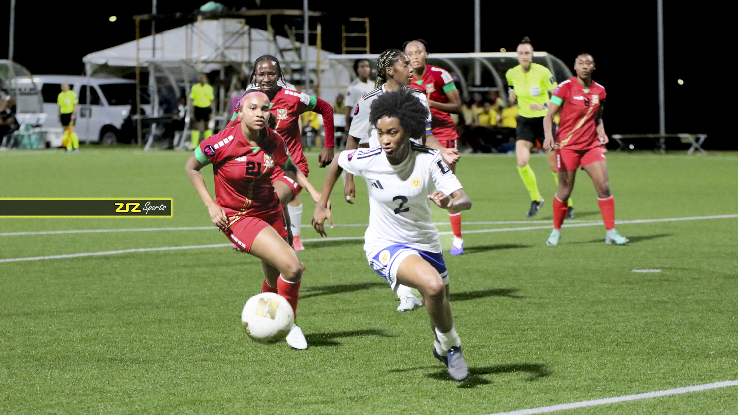 Sherema Blake gave the hosts a dream start in the first minute, slotting home a left-footed strike from the centre of the box to make it 1-0. St. Kitts and Nevis held the lead through a physical and injury-hit first half, despite multiple delays and several yellow cards issued to both sides.
