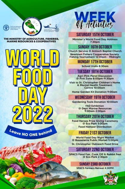 World Food Day was observed under the theme “Leave NO ONE behind.” A number of activities are being held locally this week to commemorate the occasion including a panel discussion on October 18, food heroes prize giving on October 20, a night market on October 21, and a food fair on October 22.