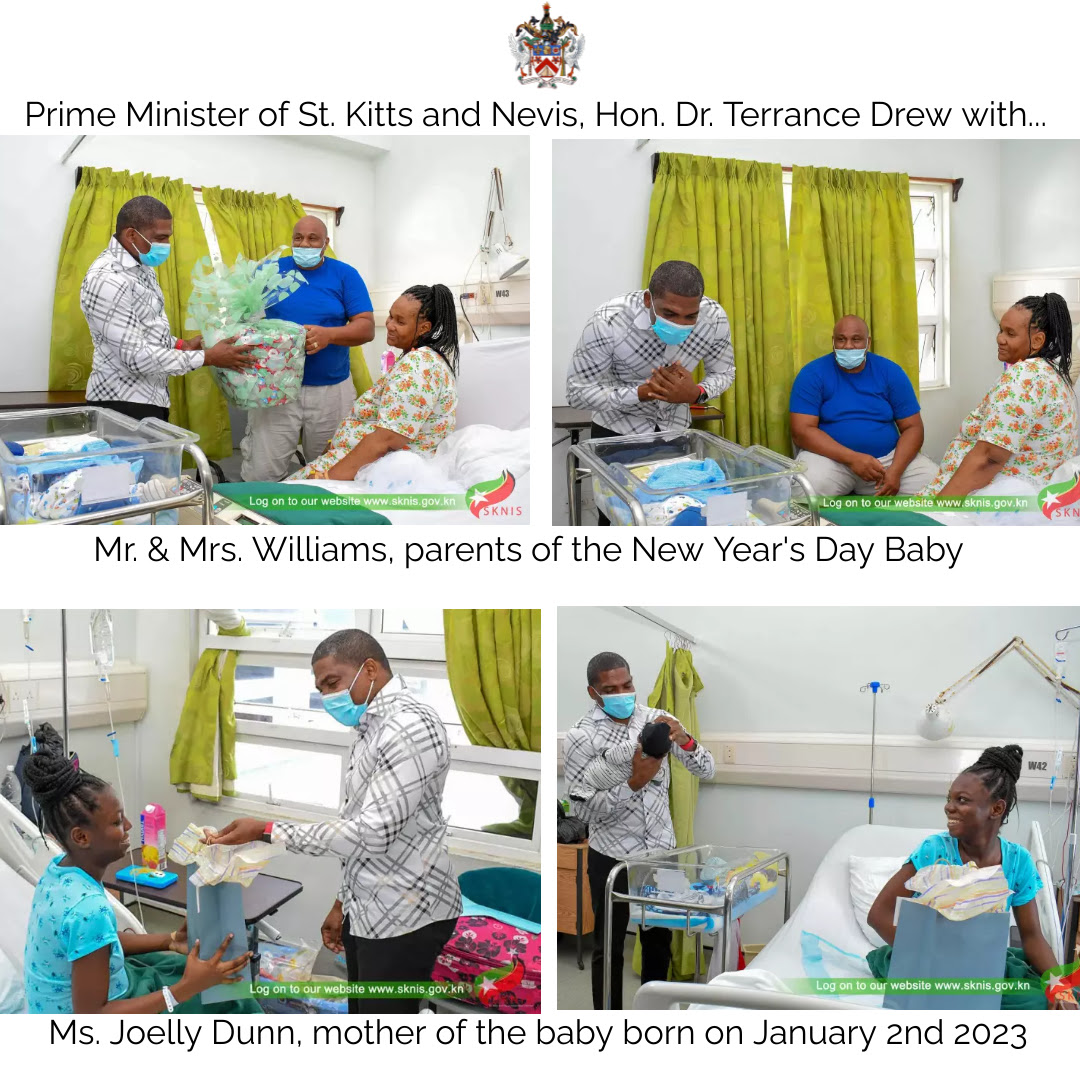 Basseterre, St. Kitts and Nevis, January 3, 2023 [Press Secretary’s Office]: The first two babies born in St. Kitts and Nevis in 2023 are both males. The Prime Minister and Minister of Health, Hon. Dr. Terrance Drew today (Tuesday 3rd January 2023) visited the Joseph N. France General Hospital, bearing gifts, to congratulate the mothers of the first two babies born within the Federation.