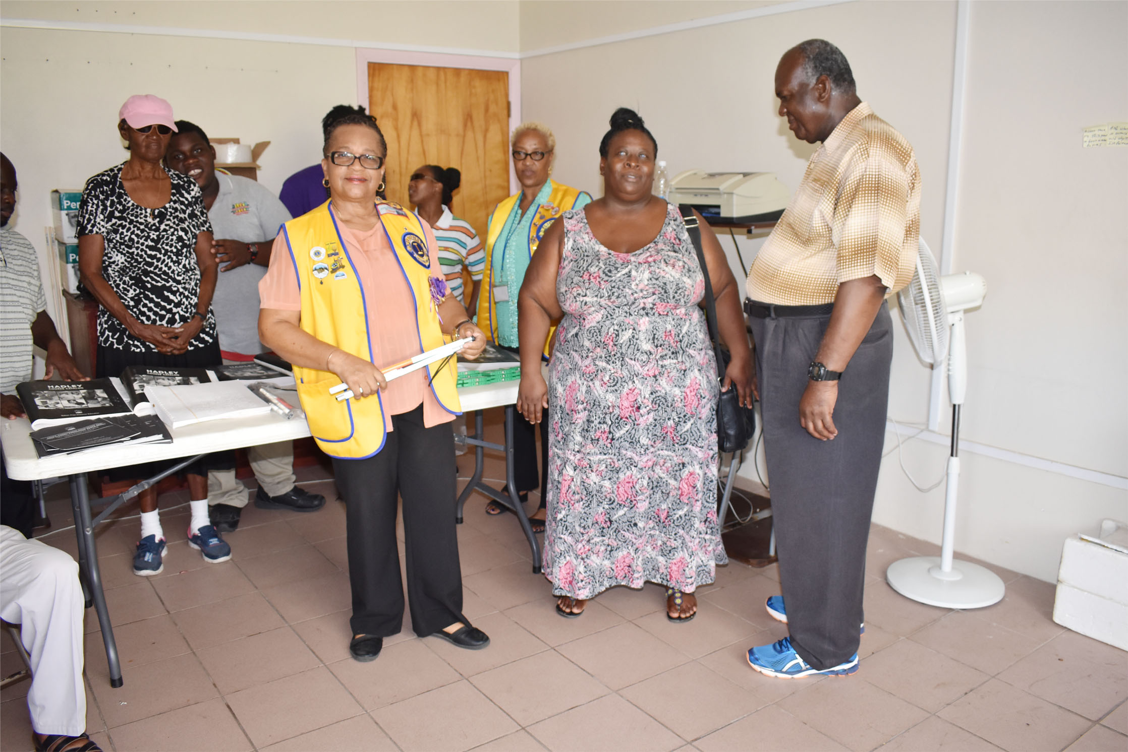 Thursday October 17 was a memorable day at the McKnight Community Centre with President of the St. Kitts (Basseterre) Lions Club Ms Charmaine Pemberton, who was accompanied by past President Ms Adora Warner and member Mrs Judy Tyrell, making a presentation of braille books, braille dominos, and audio cassette tapes to the St. Kitts Society for the Blind, and white canes to two visually impaired members of the society.