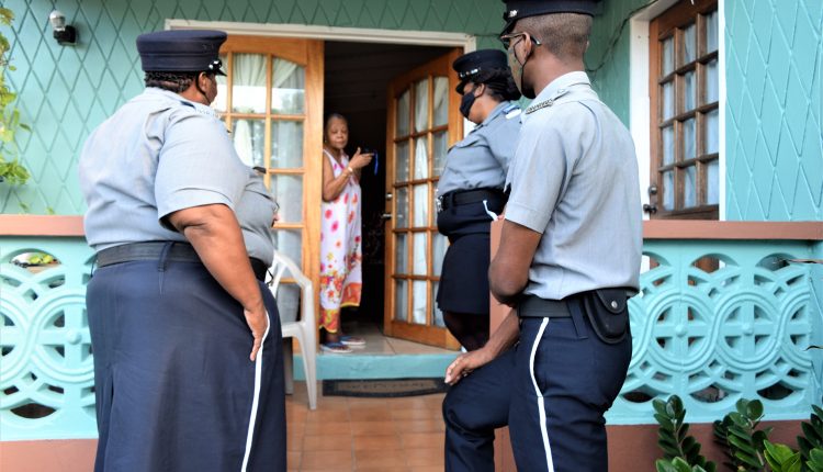 Civilian Worker Caines reminded the elderly about the importance of remaining active and doing light exercises while at home. She demonstrated simple stretches that can be done and encouraged them to take daily walks around the yard. In some instances, the Officers were seen stretching along with them. The seniors were also sensitized on the importance of wearing masks if they had to leave the house and hand hygiene.