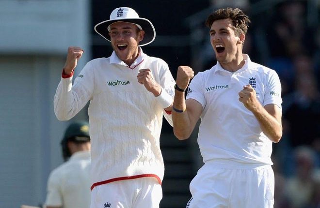Sports Page — Two years ago Steven Finn was unselectable. Now that statement seems unbelievable. On a dramatic second day at Edgbaston, Finn claimed five wickets and ran through Australia so comprehensively that their survival until stumps was an achievement in itself. They were barely clinging on, though; at 168 for 7 they had a lead of 23, and were relying on Peter Nevill, who was on 36, and Mitchell Starc, who had 7.