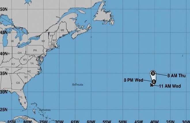 The National Hurricane Centre (NHC) in Miami said at 11 a.m. that the centre of the system which has maximum sustained winds of 35 miles per hour, had formed in the Central Atlantic between Bermuda and the Azores.