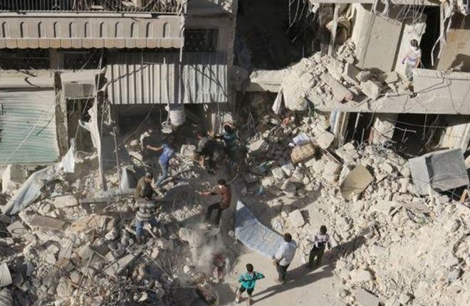 Medics in the city are struggling to cope with the huge number of casualties caused by the most sustained and intense aerial bombardment in years