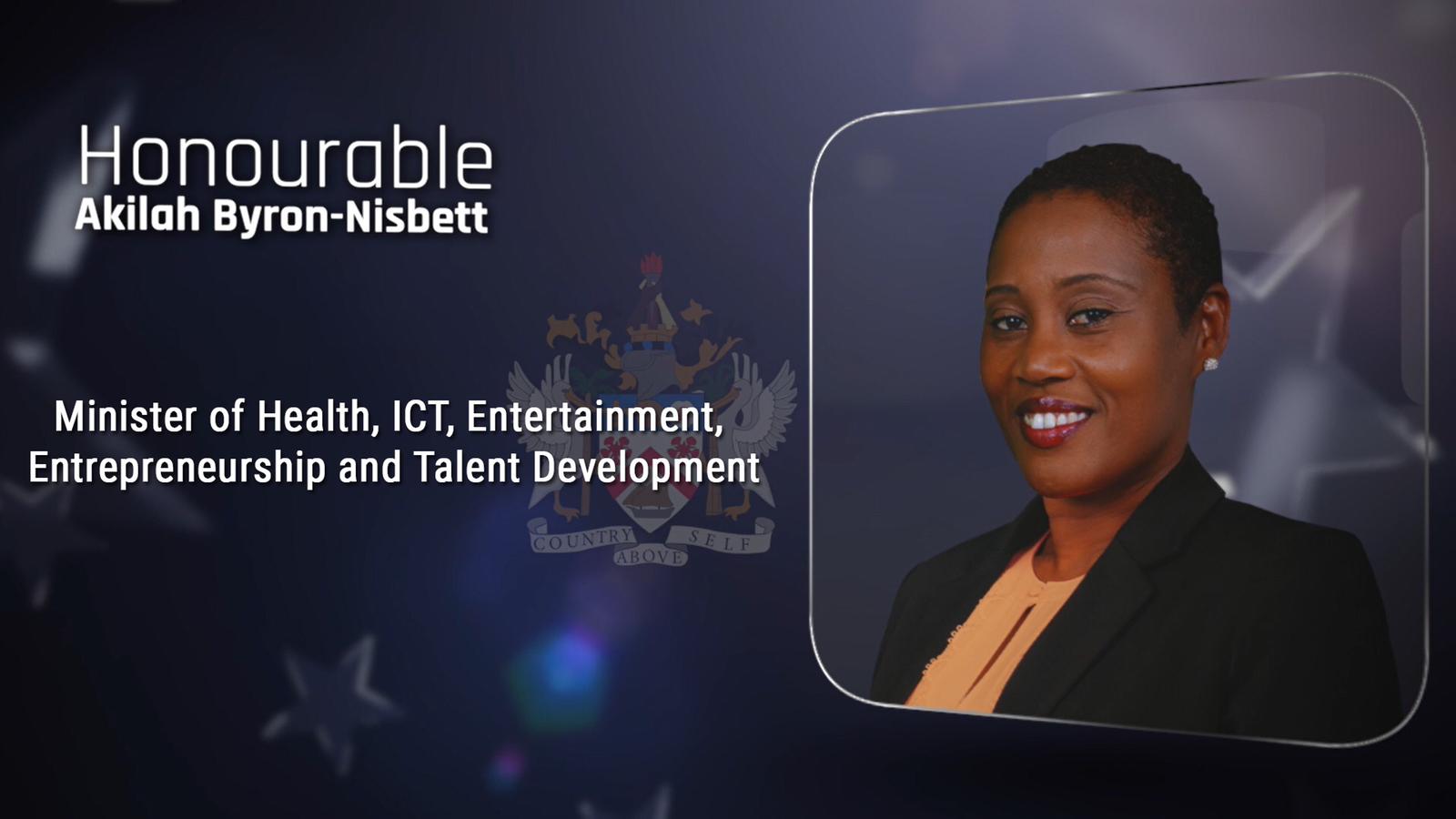Hon. Akilah Byron-Nisbett – Minister of Health, ICT, Entertainment, Entrepreneurship and Talent Development.