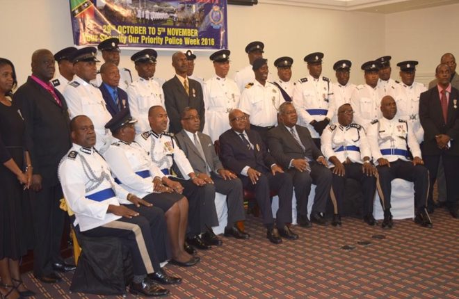 (SKNIS): Thirty-two members of the Royal St. Christopher and Nevis Police Force were saluted on Thursday (November 03) for 18 years of uninterrupted service with good conduct as clebrations for Police Week 2016 climaxed.