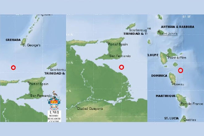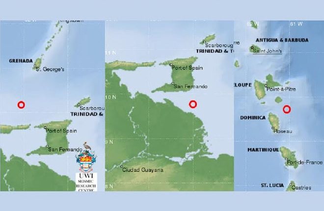 The University of the West Indies (UWI) Seismic Research Centre recorded three earthquakes between Saturday and yesterday, none of them causing any damage or injuries.