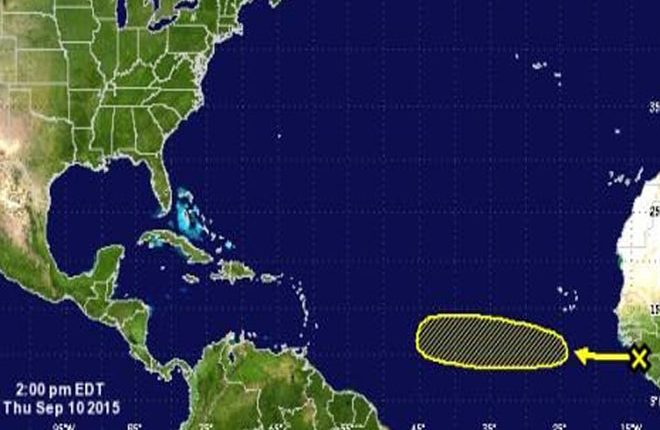 Meanwhile, a tropical wave near the west coast of Africa is producing some disorganized shower and thunderstorm activity. Some slow development of this wave is possible during the next several days while it moves westward across the tropical Atlantic at about 15 mph. The chances of a tropical cyclone forming during the next five days are low (20 percent).