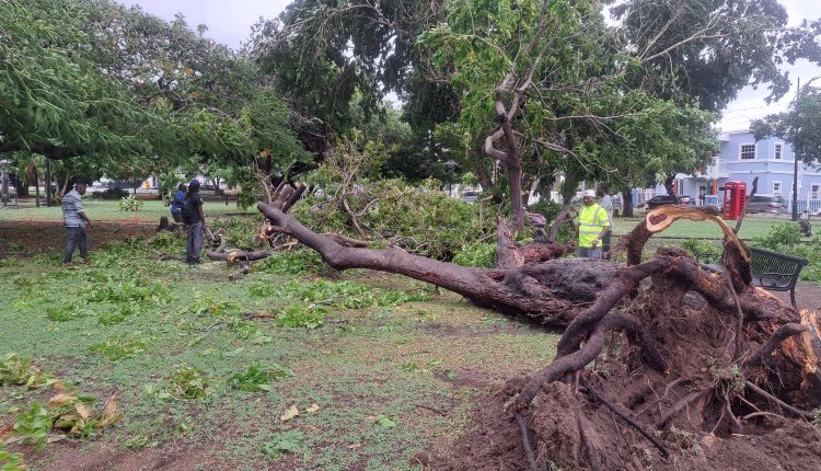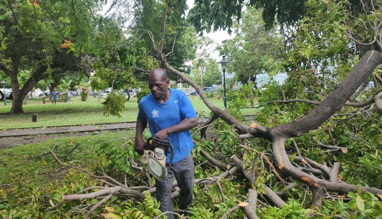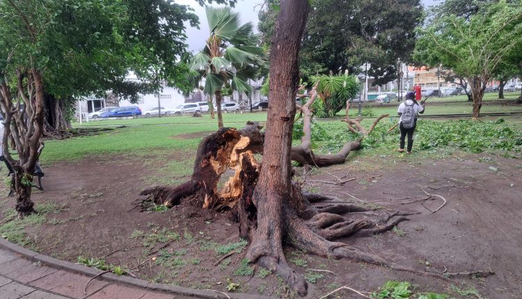 The staff of the Parks and Beaches Unit were also seen clearing the debris and removing the trees for persons to safely move through the square.