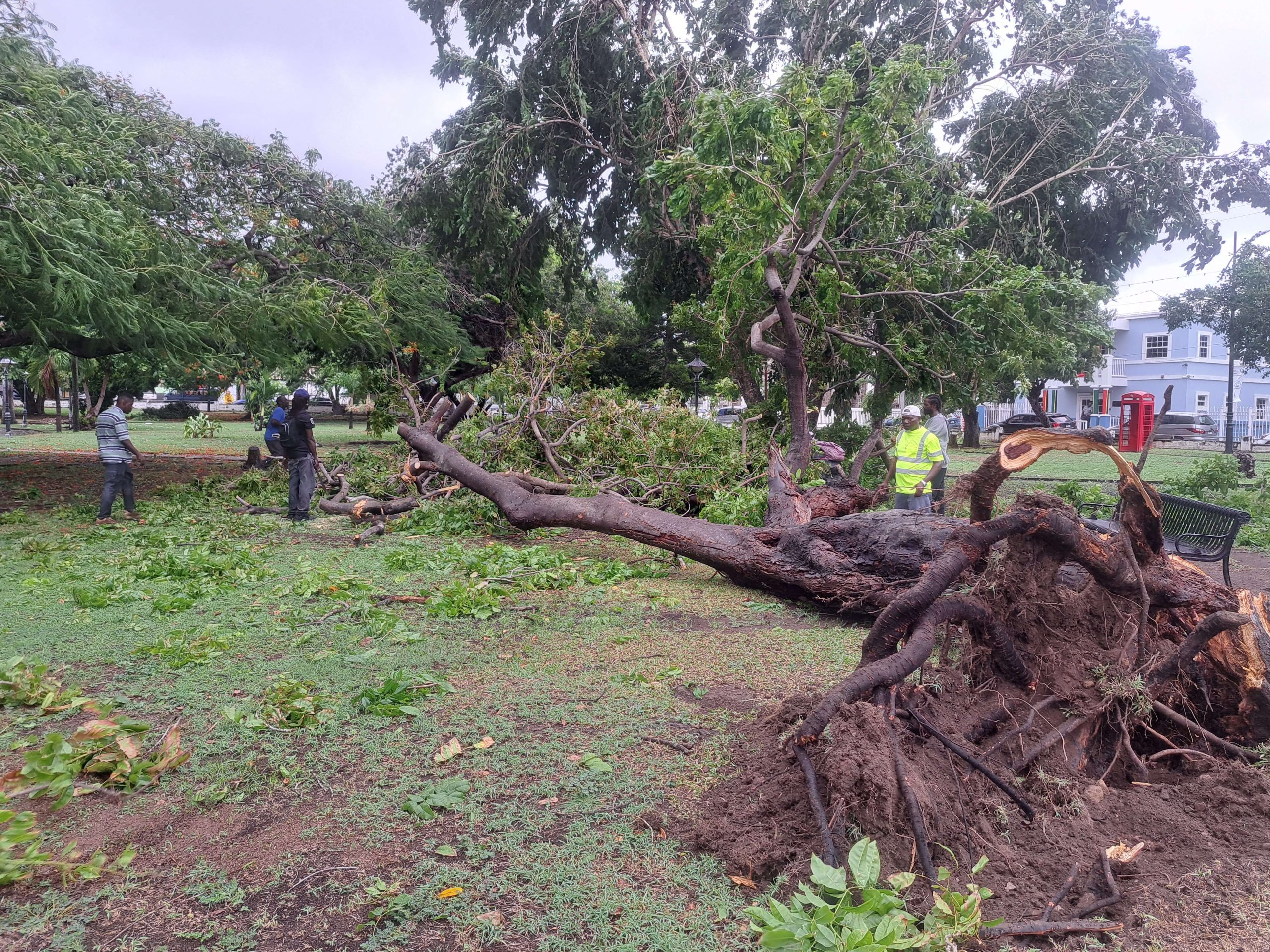 The staff of the Parks and Beaches Unit were also seen clearing the debris and removing the trees for persons to safely move through the square.