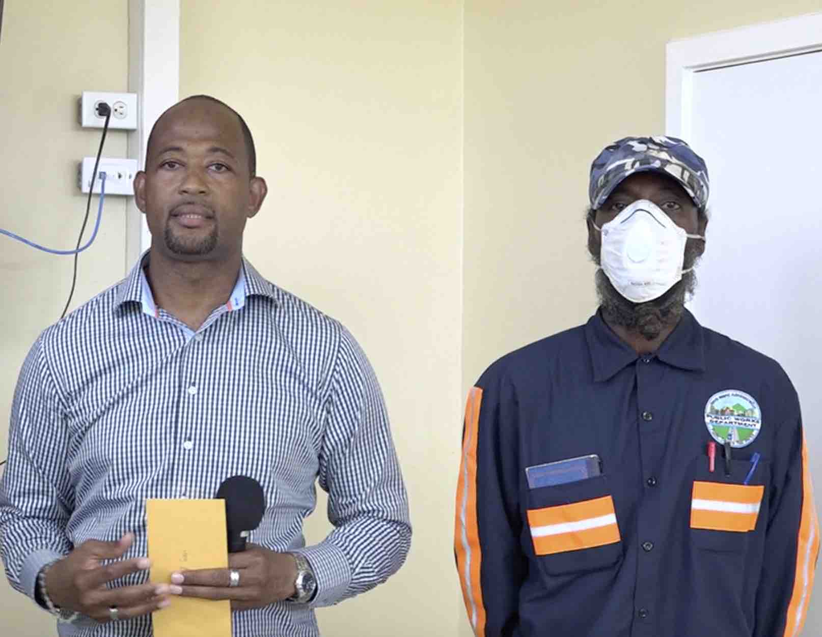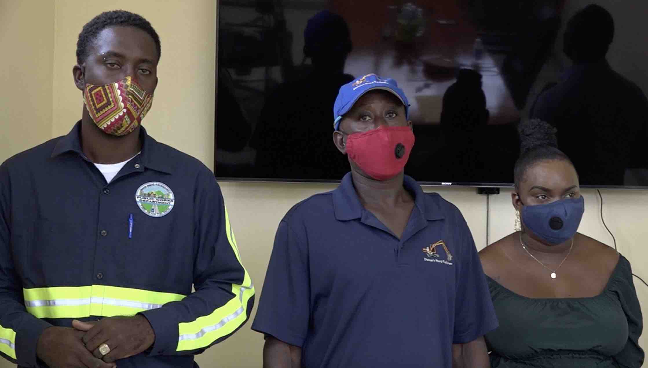 Also present were Kester Webbe, Field Supervisor at the PWD whose idea it was to assist persons affected by the COVID-19 pandemic; and Rickardo Gittens, Equipment Dispatcher at the PWD, who was instrumental in organising the collection of donations.