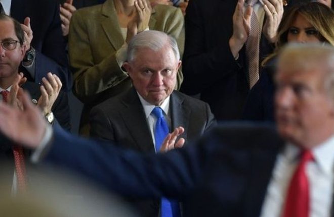 US President Donald Trump has accused Attorney General Jeff Sessions and the justice department of damaging the re-election chances of two Republican representatives by prosecuting them.