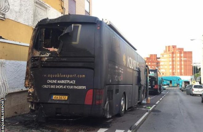 Aqua Blue Sport had parked their team bus outside their hotel in Almeria, but by the morning it had been gutted by flames.