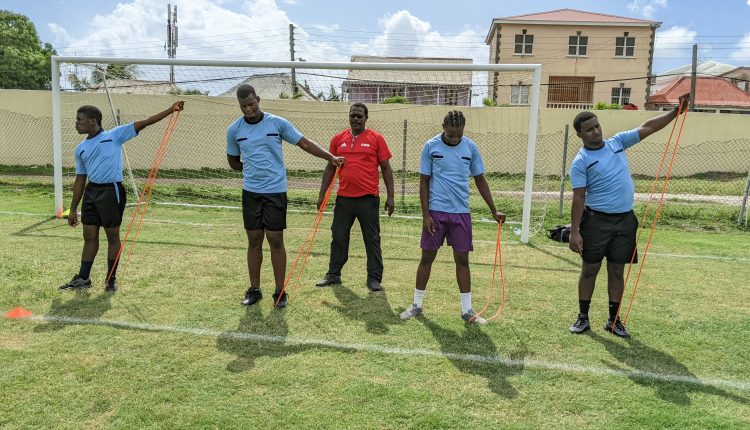 Basseterre, St. Kitts, December 16, 2021 (SKNFA) — Participants in the SKNFA Youth Referees Course took to the field last week Saturday to do field exercises. Referee Instructors took the participants through several fitness drills and practical sessions in the technical aspect of officiating. Head of the St. Kitts and Nevis Football Association Referees Department Malcom Ramsey, gave a synopsis of what was done in the course so far, which officially opened on Wednesday. “Quite a few of them are new so we took our time with the topics,” Ramsey said. “The usual topics for refereeing courses are challenges, penalty area incidents, tactical fouls, offside and we also have handball situations. So, we went through these topics with them and we also did a (written) test,” he disclosed.